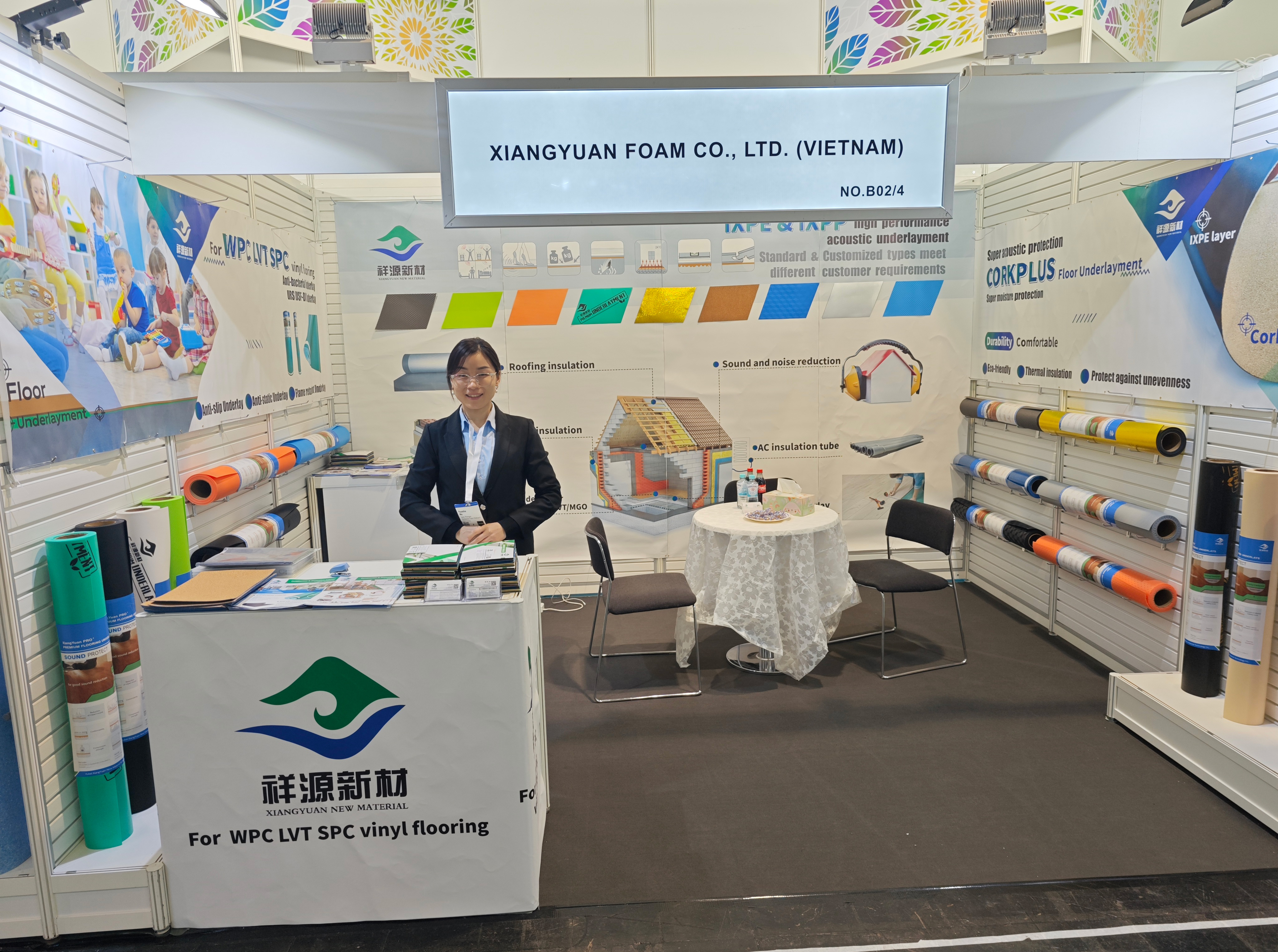 Elite members of Xiangyuan traveled to Germany, bringing a variety of flooring silent underlays of IXPE, IXPP, PU and rubber.
